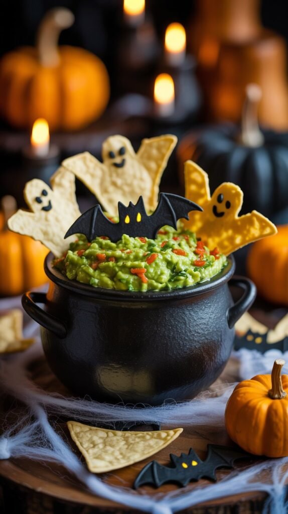 On top, add a layer of creamy guacamole for that vibrant green pop (it doubles as the “slime” for your spooky theme).