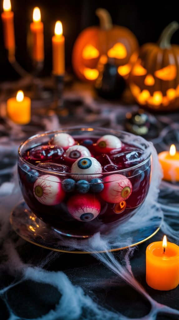 Bloody Eyeball Punch isn’t just a drink — it’s a conversation starter. Guests will be taking photos, laughing, and cautiously reaching in to grab an eyeball before sipping.