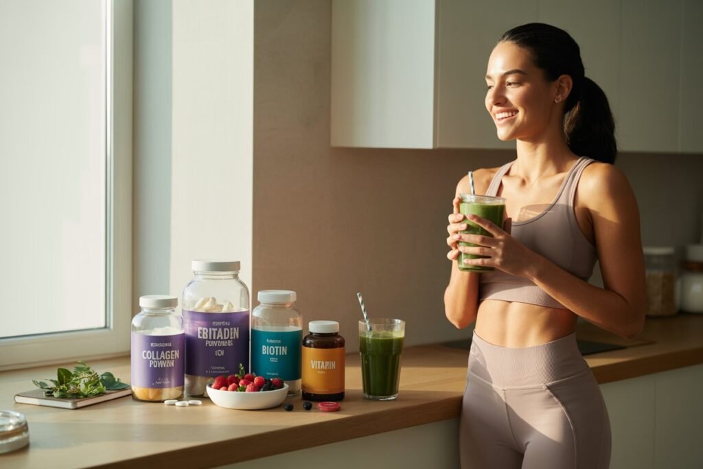 Top supplements for gym girls: collagen peptides, biotin (for skin/hair), iron-rich multivitamin.