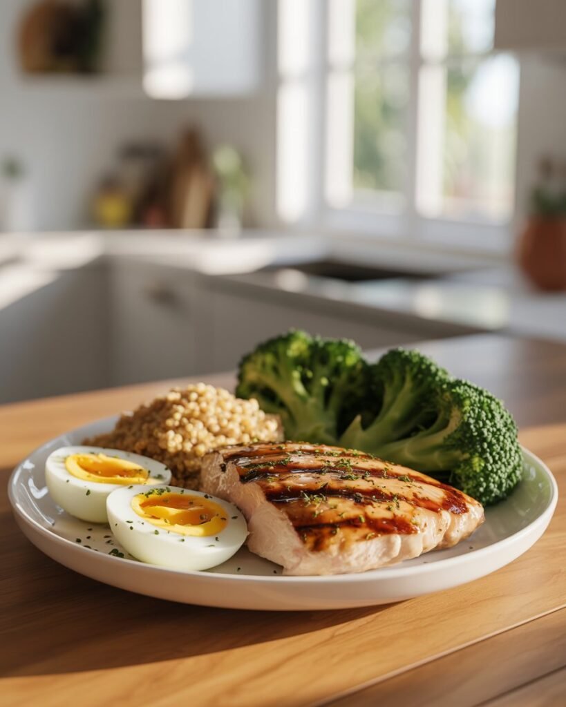 Keep pre-cooked options like grilled chicken strips or boiled eggs ready in your fridge. Having them on hand makes it easier to hit your protein goals, even on busy days.