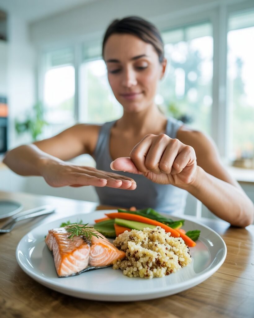 Don’t skip meals — spacing them evenly keeps your metabolism active. Listen to your hunger signals, and avoid eating just because it’s “time.”
