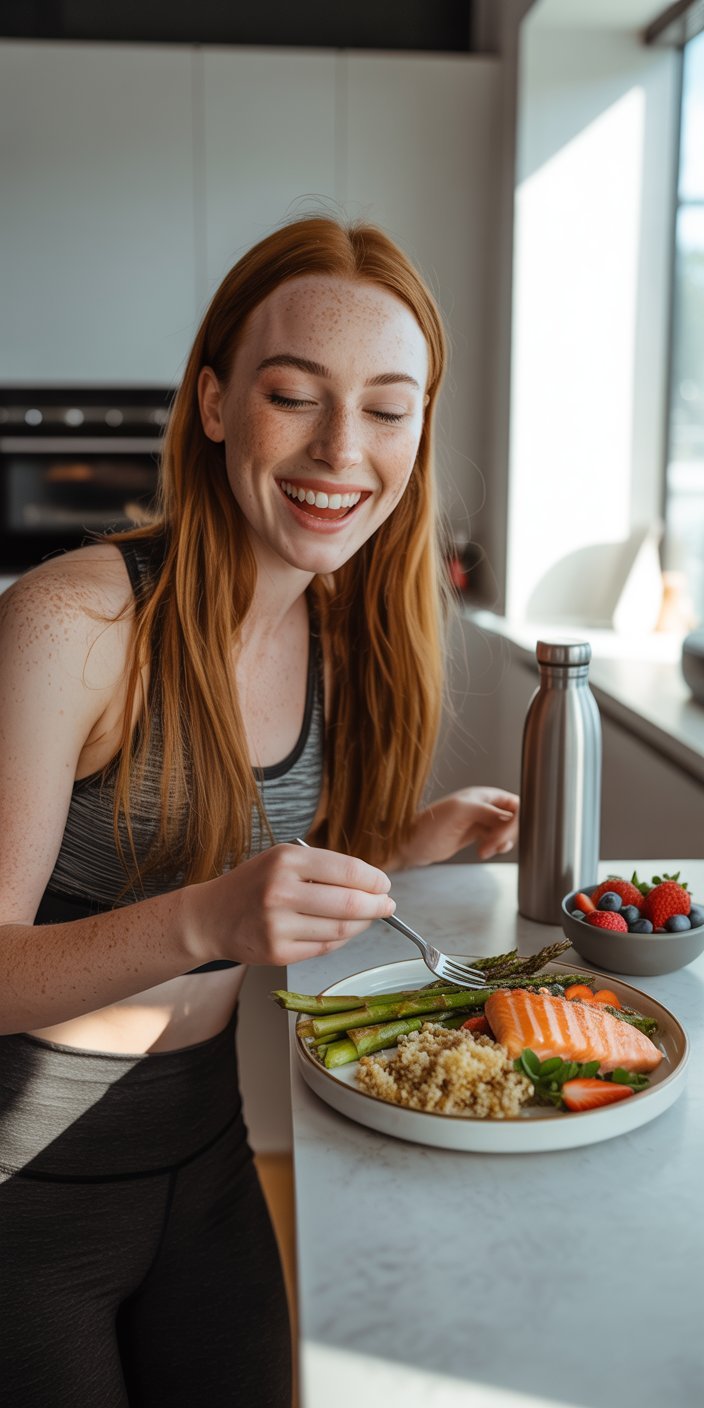 Examples: grilled chicken with quinoa and veggies, salmon with sweet potatoes, or a protein shake with fruit.