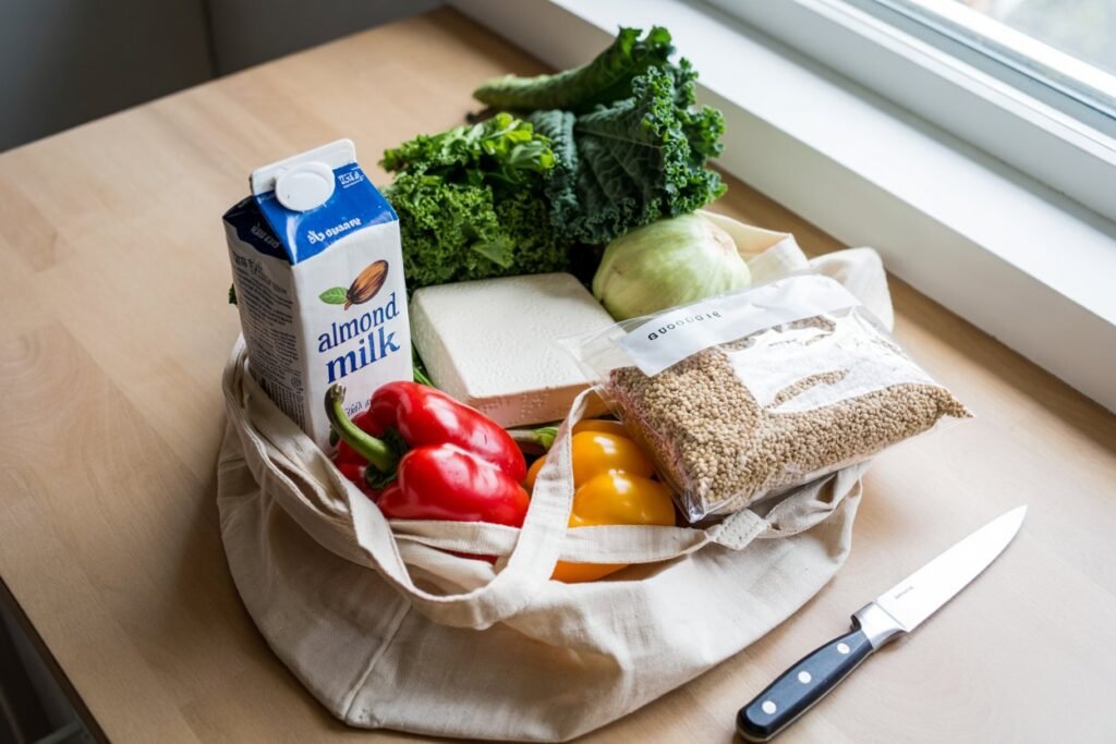 • Fruits and vegetables: The colorful foundation of every vegan meal — think berries, leafy greens, avocados, and sweet potatoes.